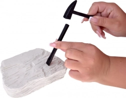 W każdym bloku czeka niespodzianka – może to być czaszka mamuta, tygrysa szablozębnego, orła, krokodyla i innych fascynujących stworzeń. Dzieci za pomocą młoteczka, dłutek i pędzelka wypróbują pracę młodego archeologa i krok po kroku odkryją ukryte znalezisko.