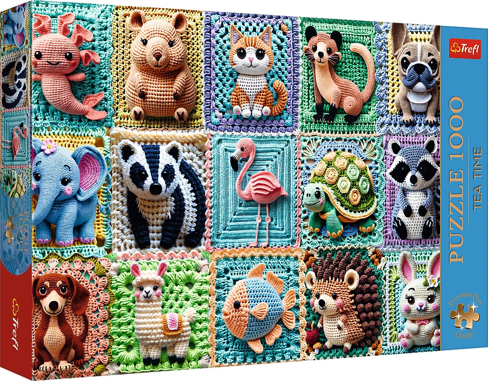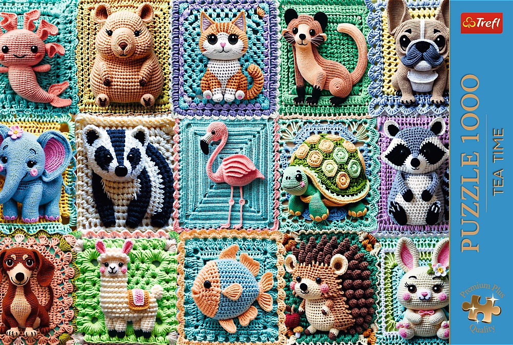 Odkryj kojący świat puzzli z ekskluzywną serią TREFL Premium Plus. Motyw delikatnych szydełkowych zwierzątek ucieszy oczy i duszę, a precyzyjnie wycinane elementy gwarantują idealne dopasowanie i płynny przebieg układania. Ekstra mocna tektura trwale łączy części, dzięki czemu gotowe segmenty można wygodnie przenosić.