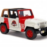 Odkryj szczegółowo opracowany metalowy model Jeep Wrangler JURASSIC PARK w skali 1:32. Biała karoseria z czerwonymi akcentami, numerem 18 i logotypami filmu natychmiast przywodzi na myśl legendarną wyprawę do świata dinozaurów. Model oferuje swobodne toczenie dla płynnego ruchu oraz funkcjonalne otwierane drzwi dla jeszcze bardziej realistycznych wrażeń.