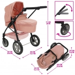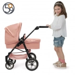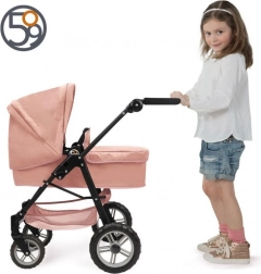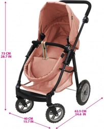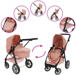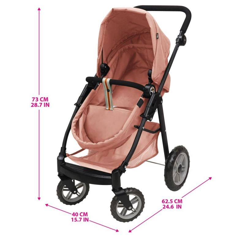 Stylowy wózek dla lalek 2w1 w różowej wersji oferuje luksusowe wykonanie, odpinane siedzisko oraz możliwość zmiany na wersję spacerową. Dzięki regulowanej rączce, obrotowemu przedniemu kołu i dużemu koszowi jest idealny dla małych mam. Odpowiedni dla lalek do ok. 53 cm.