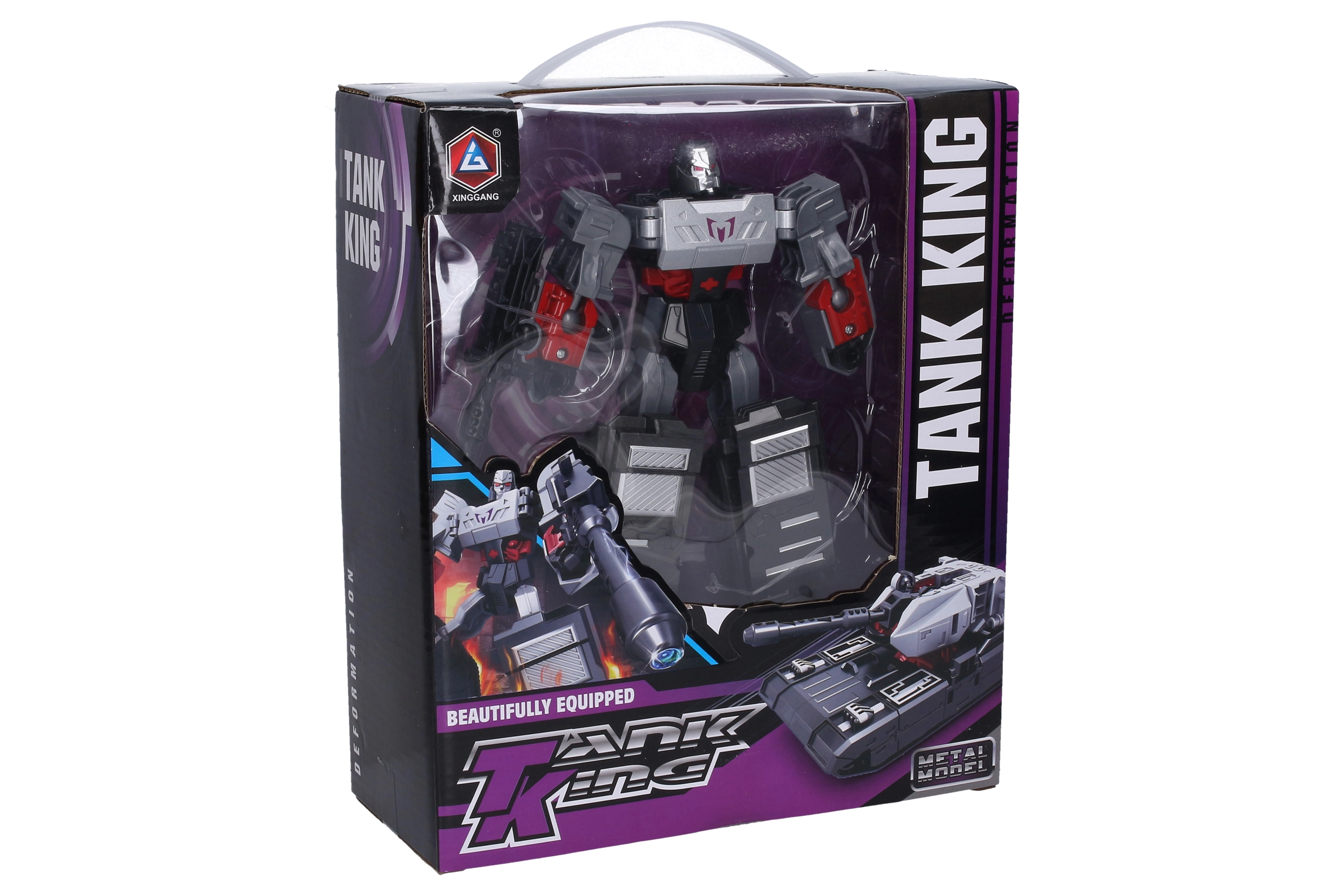 Odkryj akcyjnego autorobota Tank King w eleganckim czarnym kolorze, który łatwo transformuje się w czołg. Kompaktowe wykonanie o długości ok. 19 cm łączy wytrzymały metal i plastik dla długiej żywotności i zabawy. Idealna zabawka dla dzieci, które kochają roboty i technikę wojskową.
