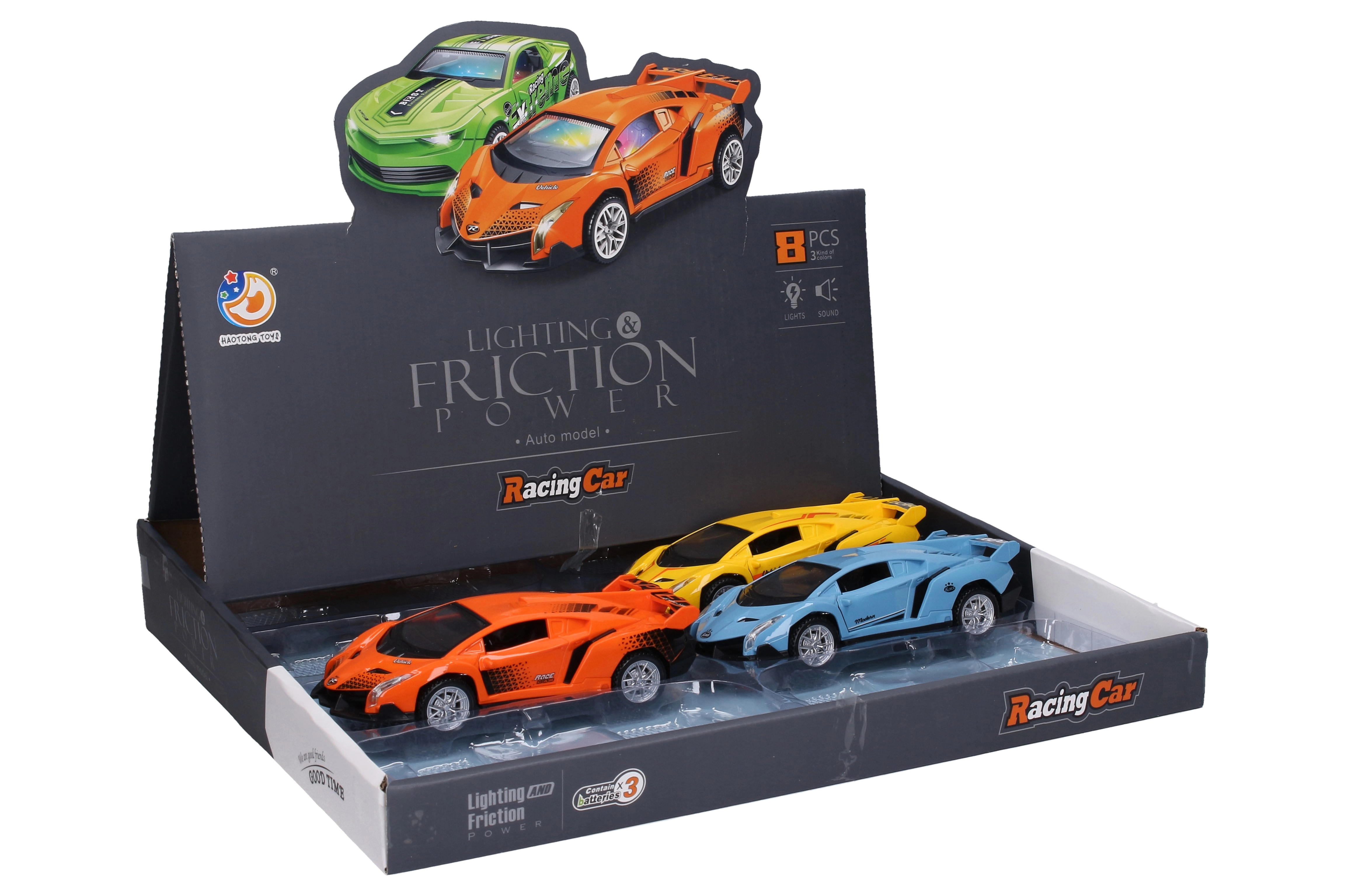 Zabawne auto na napęd cierny o długości 15 cm ucieszy każdego małego kierowcę. Oferuje efekty świetlne i dźwiękowe, przycisk do odtwarzania muzyki umieszczony od spodu auta i jest gotowe do natychmiastowego użycia dzięki bateriom 3× AG13 w zestawie. Dostępne są różne wersje kolorystyczne oraz praktyczne opakowanie w display boxie.