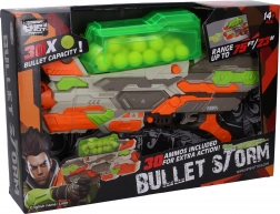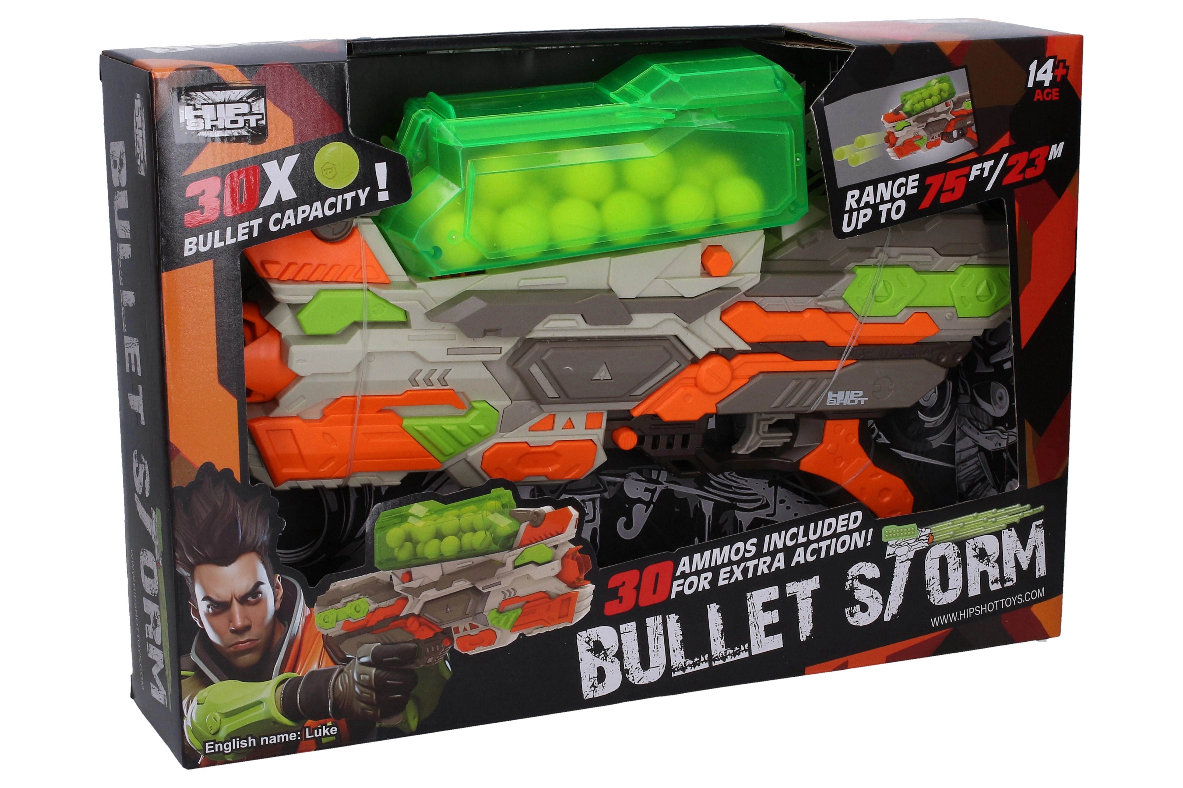 Przygotuj się na pełną akcji zabawę z pistoletem Bullet Storm, który łączy bezpieczeństwo i wydajność. Dzięki zasięgowi do 23 metrów oraz zapasowi 30 miękkich piankowych kulek spędzisz długie godziny na grze w domu i na zewnątrz. Solidne wykonanie i wygodny chwyt zapewniają komfortowe i pewne sterowanie.