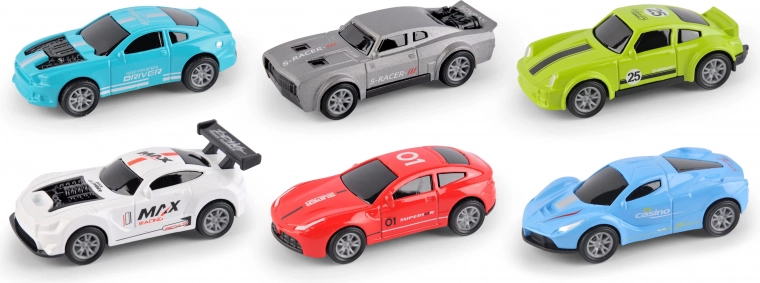 Odkryj zestaw kompaktowych metalowych wyścigowych autek, idealnych do dziecięcych rąk i domowych wyścigów. Dzięki solidnemu metalowemu nadwoziu i wolnym kołom jazda jest płynna i zabawna na różnych powierzchniach. Różne warianty kolorystyczne i nadruki wnoszą urozmaicenie do zabawy i pobudzają wyobraźnię.