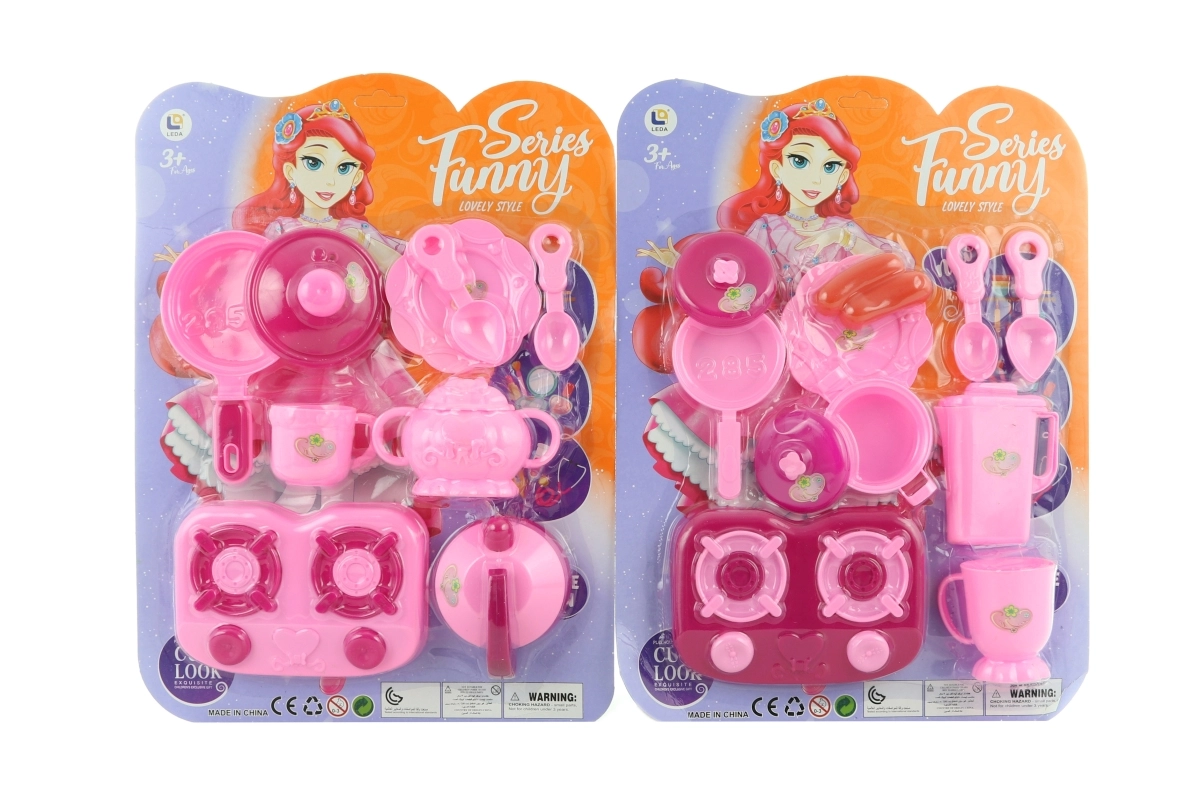 Zabawny plastikowy zestaw naczyń dla małych kucharzy zawiera wszystko, co potrzebne do zabawy w gotowanie – kuchenka, garnek, patelnia i talerzyki. Idealny do rozwijania wyobraźni i umiejętności motorycznych, odpowiedni od 3 lat.