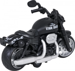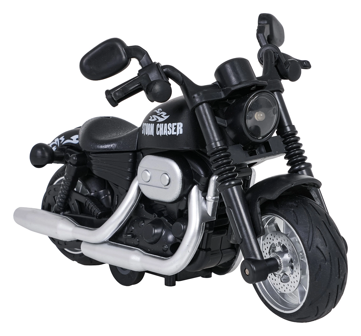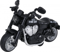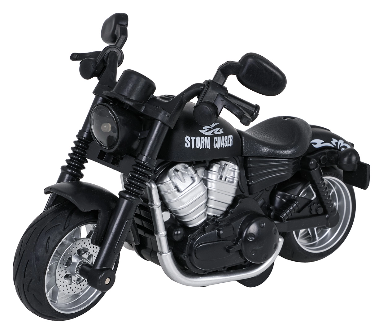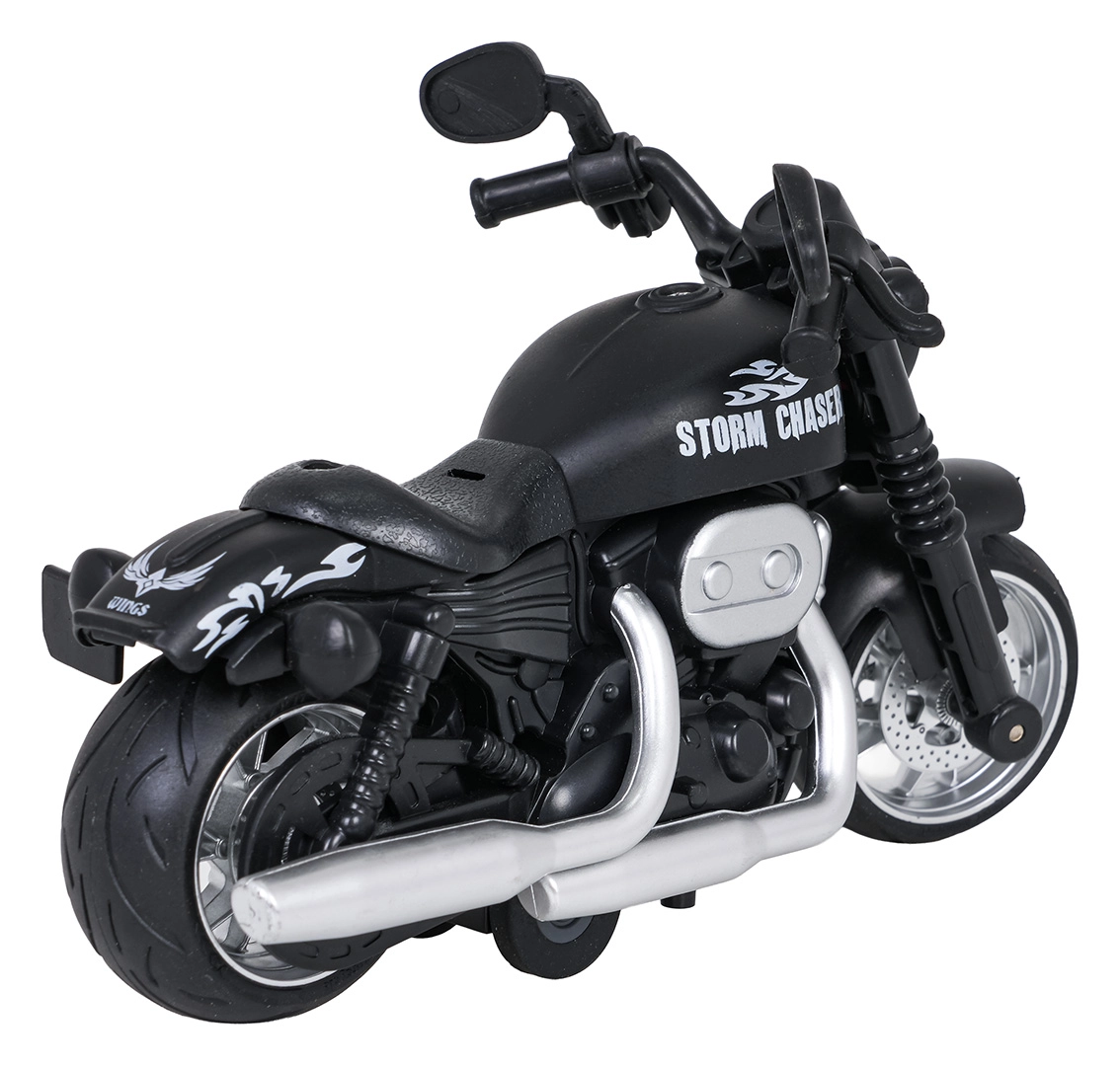 Przeżyj dynamiczną jazdę z dopracowanym modelem motocykla STORM CHASER. Solidne metalowe wykonanie, wierne detale silnika i wydechów oraz gumowe opony zapewniają świetny wygląd i odporność podczas zabawy. Dzięki napędowi pull-back wystarczy naciągnąć i puścić – motocykl ruszy do przodu.