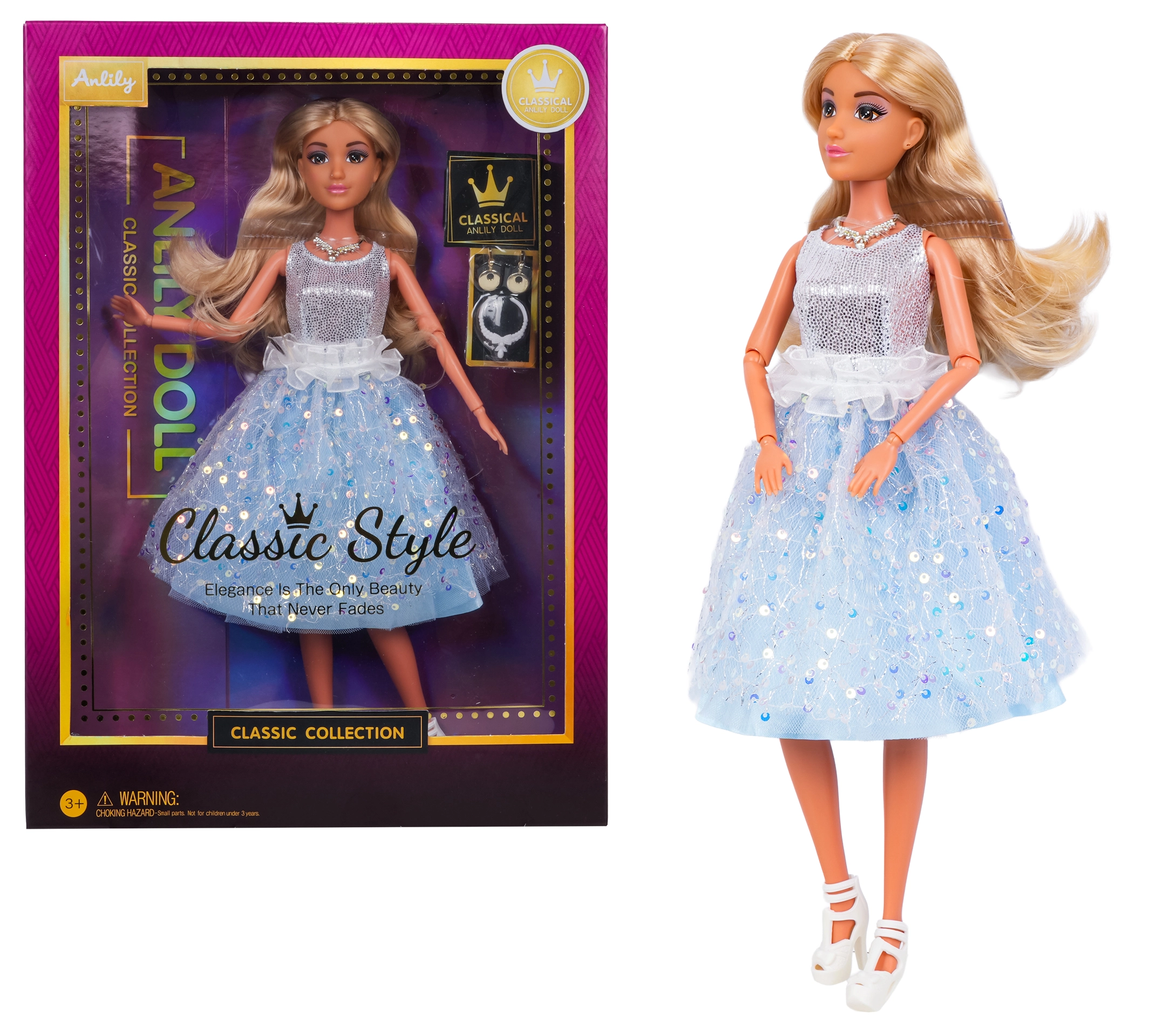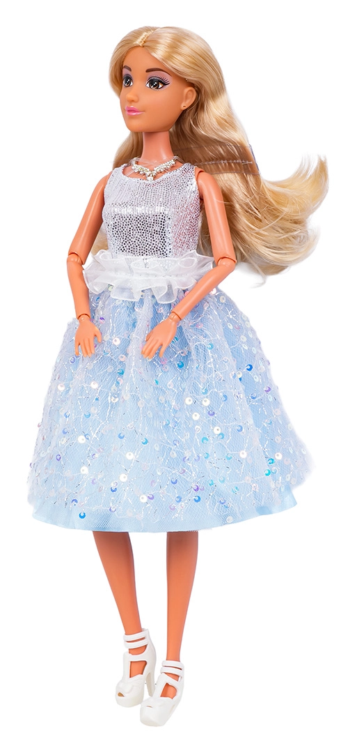 Stylowa lalka dla dzieci od trzeciego roku życia wykonana jest z wysokiej jakości materiałów z dbałością o detale. Ma realistyczne, długie i miękkie włosy odpowiednie do czesania i zaplatania, błyszczącą wieczorową sukienkę oraz białe buty na obcasie. Ruchome kończyny ze stawami w łokciach i kolanach umożliwiają naturalne pozy i jeszcze bardziej wciągającą zabawę w pokazy mody lub bale.