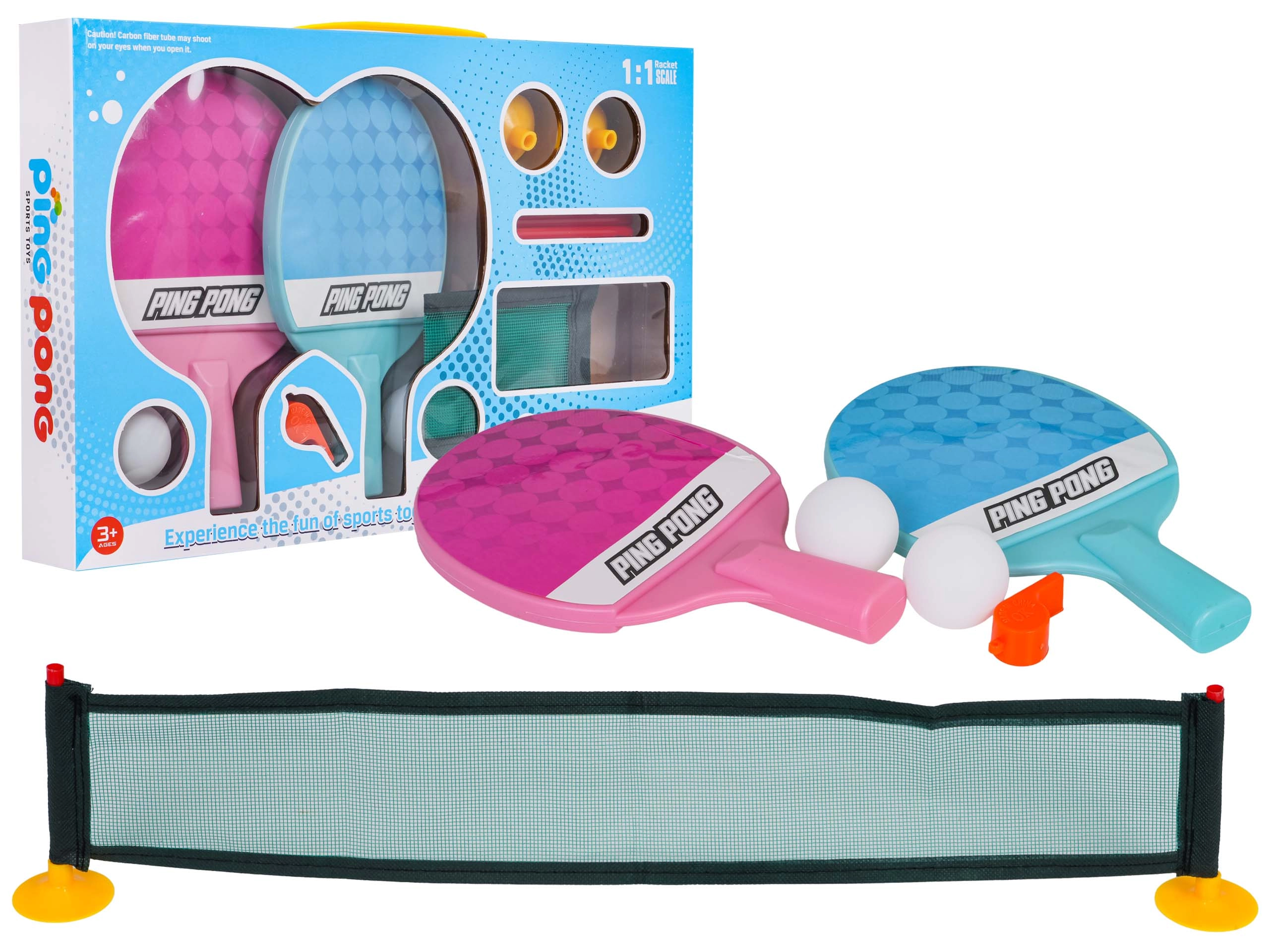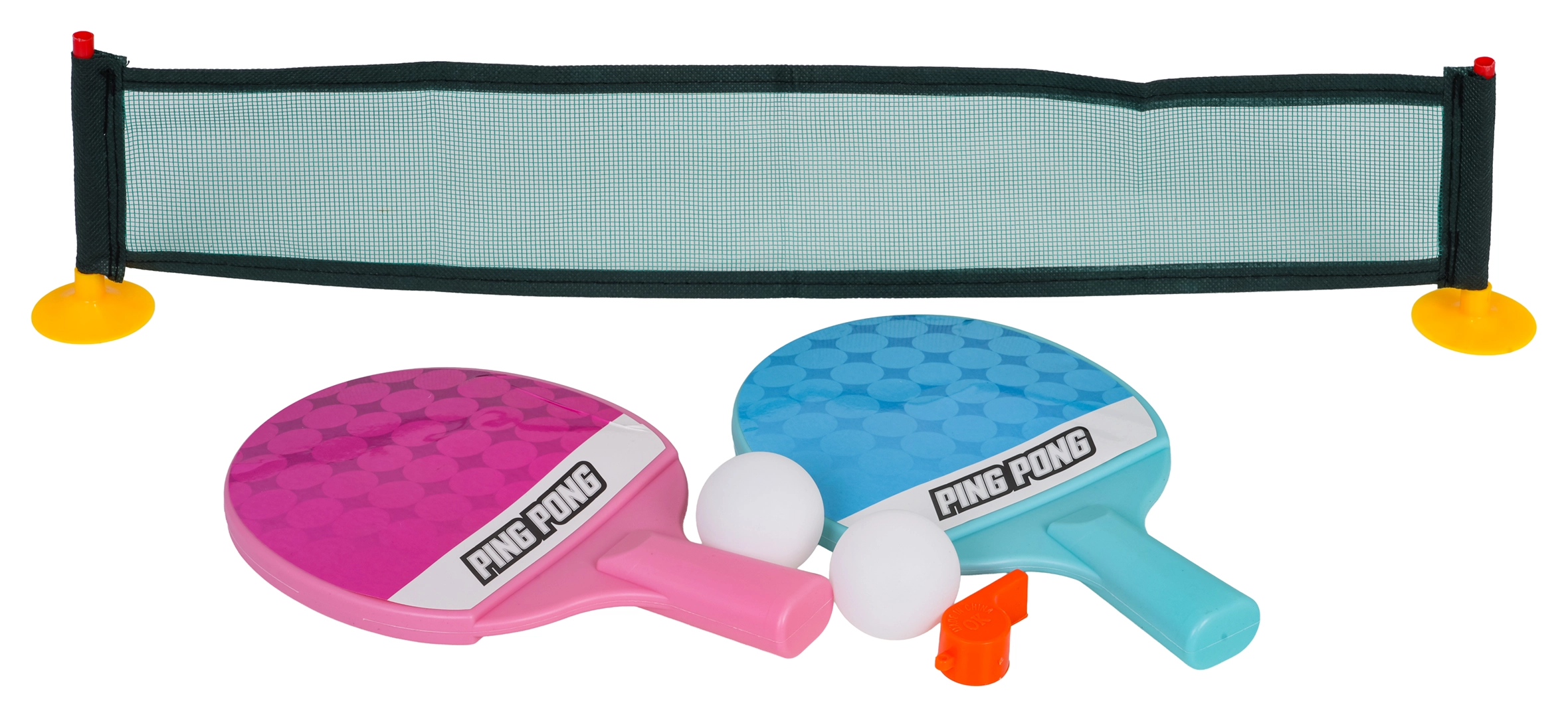 Ten dziecięcy zestaw do tenisa stołowego w mgnieniu oka zamieni każdy gładki stół w pole gry. Siatkę wystarczy rozłożyć, przymocować do plastikowych słupków z przyssawkami i docisnąć do równej powierzchni. Potem pozostaje tylko żwawo odbijać piłeczkę przez siatkę i cieszyć się ruchem oraz wspólną zabawą z dziećmi.