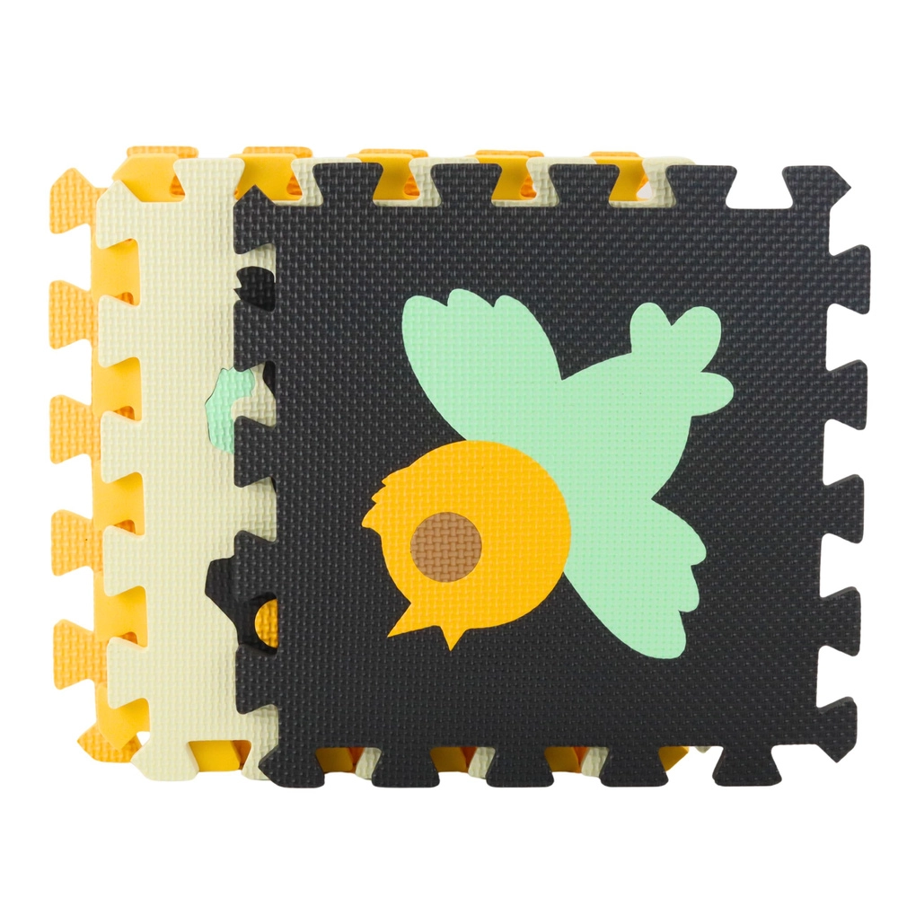 Materiał EVA przyjemnie izoluje od chłodu podłogi, amortyzuje upadki podczas raczkowania i pierwszych kroków, a dzięki antypoślizgowej teksturze zwiększa bezpieczeństwo. Poszczególne elementy łatwo łączysz w większą powierzchnię lub z nich zbudujesz prosty kojec/zagrodę. Pielęgnacja jest prosta – wystarczy przetrzeć wilgotną ściereczką.