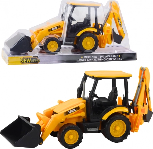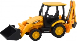 Ta żółta koparka budowlana ucieszy małych miłośników maszyn. Dzięki solidnej konstrukcji i wiernemu odwzorowaniu przypomina prawdziwy pojazd budowlany. Największym atutem są dwie funkcjonalne łyżki – przednia i tylna, które pozwalają podnosić, nabierać i przenosić różne przedmioty podczas zabawy.