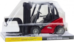 Realistyczny dziecięcy wózek widłowy w atrakcyjnym czerwono-czarnym wzornictwie zapewnia prawdziwe wrażenia z pracy w magazynie lub na budowie. Dzięki ruchomym widłom można podnosić i opuszczać ładunek, co wspiera kreatywną zabawę i rozwój małej motoryki. Solidne wykonanie z wysokiej jakości plastiku oraz duże wymiary gwarantują długą i bezpieczną zabawę w domu i na zewnątrz.