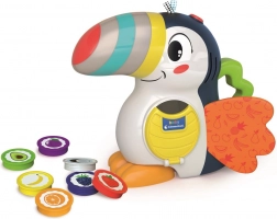 Odkryj pierwszą naukę poprzez zabawę z uroczym przyjacielem – interaktywnym tukanem Adrianem od CLEMENTONI. Dziecko wkłada tematyczne żetony z symbolami owoców i kolorów, a dziób tukana reaguje na nie światłem w odpowiadających im odcieniach. W ten sposób wspiera percepcję wzrokową, myślenie logiczne i rozwój słownictwa.