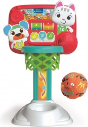 Konstrukcja „rośnie wraz z dzieckiem” z regulowaną podstawą pozwala dopasować wysokość do wieku i umiejętności dziecka. Zabawa piłką rozwija zmysł równowagi, celność i sprawność manualną, a kolorowy design z motywami zwierzątek pobudza wyobraźnię.