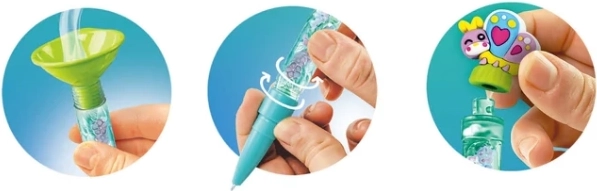 W opakowaniu znajdziesz kompletne wyposażenie, w tym kolorowe tusze, przezroczyste tubki, ozdoby, koraliki i gumowe figurki. Dzieci mogą zaprojektować własny styl, łączyć kolory i dodatki oraz rozwijać swoją kreatywność i zręczność.