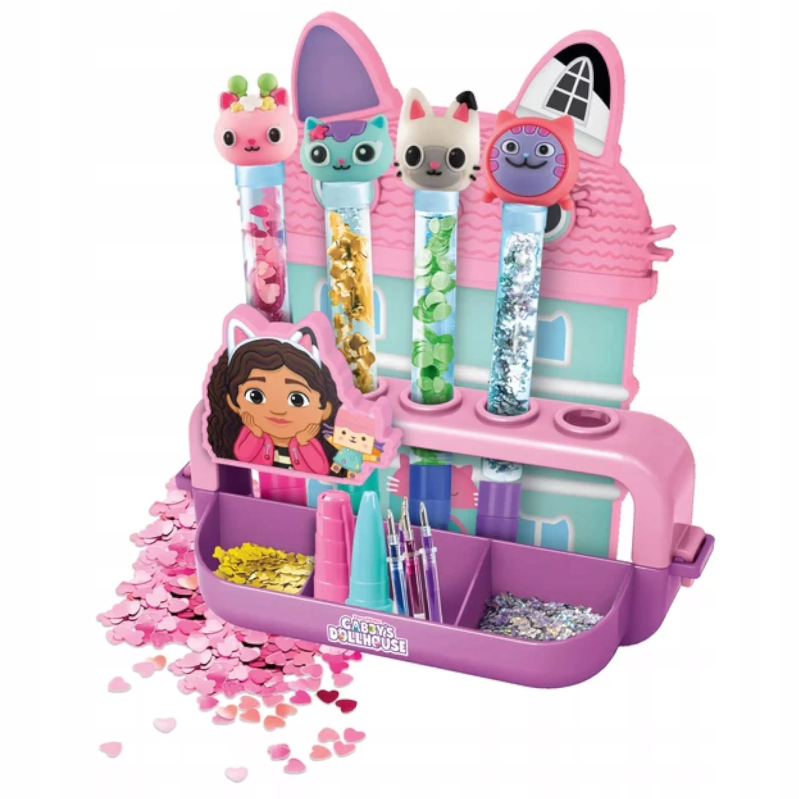 Wejdź do kreatywnego świata GABBY’S DOLLHOUSE i twórz własne, błyszczące, kolorowe i niepowtarzalne długopisy! Ten zestaw marki Clementoni wspiera kreatywność, rozwija małą motorykę i zapewnia dzieciom godziny zabawy przy personalizacji przyborów do pisania za pomocą brokatu, naklejek i uroczych motywów.