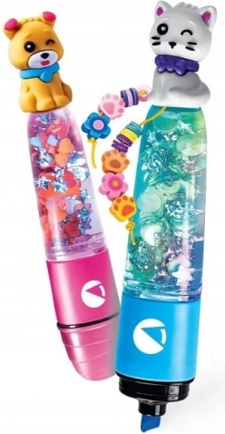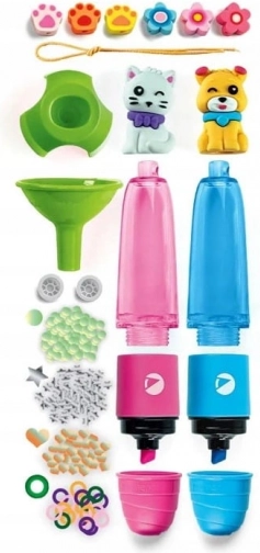 Z kreatywnym zestawem Clementoni Idea – Sweet Pets dzieci złożą i ozdobią 2 oryginalne zakreślacze dokładnie po swojemu. Dzięki kolorowym atramentom, uroczym ozdobom i prostym narzędziom powstaną wyjątkowe przybory szkolne, które pobudzą wyobraźnię i radość z tworzenia.