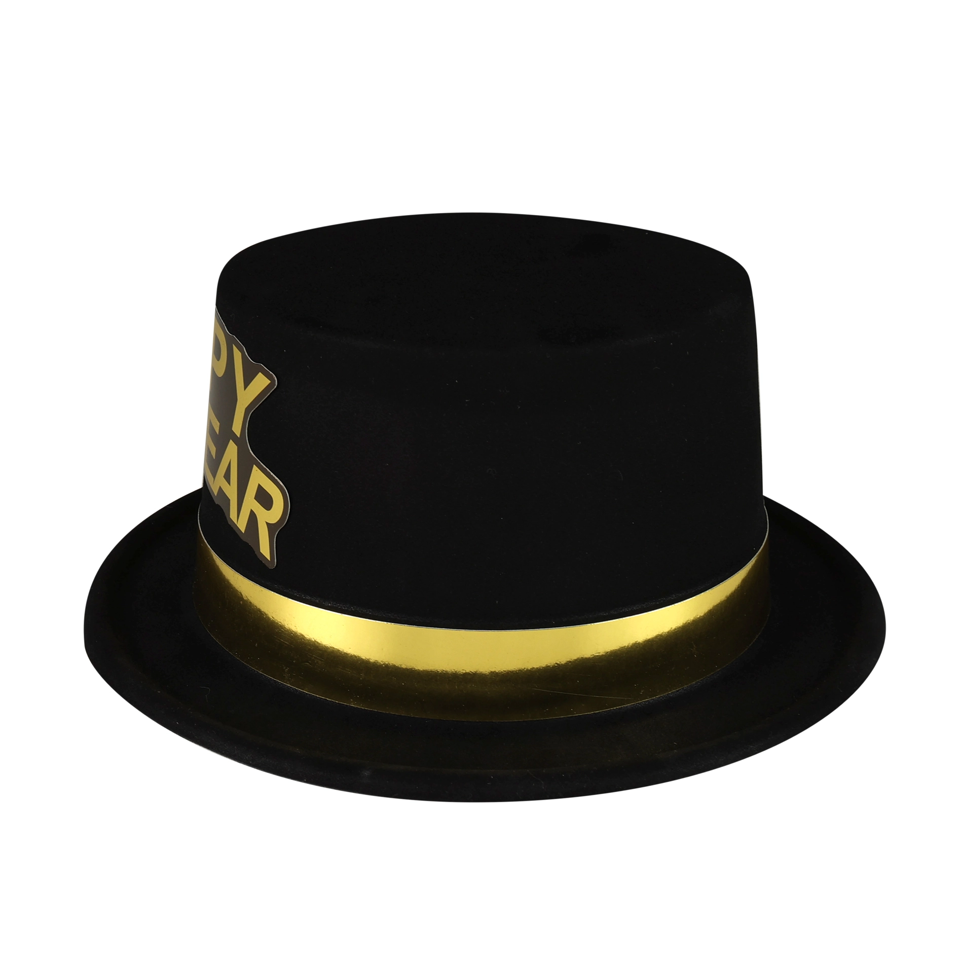 Dodaj swojemu Sylwestrowi blasku. Ten elegancki czarny kapelusz z błyszczącym złotym paskiem i napisem HAPPY NEW YEAR przyciąga wzrok i podkreśla atmosferę północnego odliczania. Idealny na domowe imprezy, kluby i firmowe wieczory.