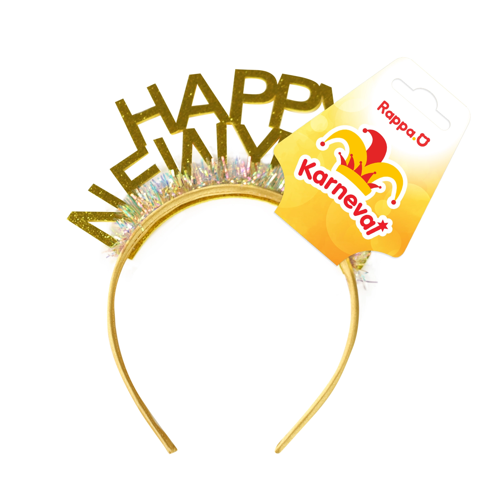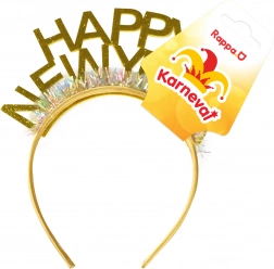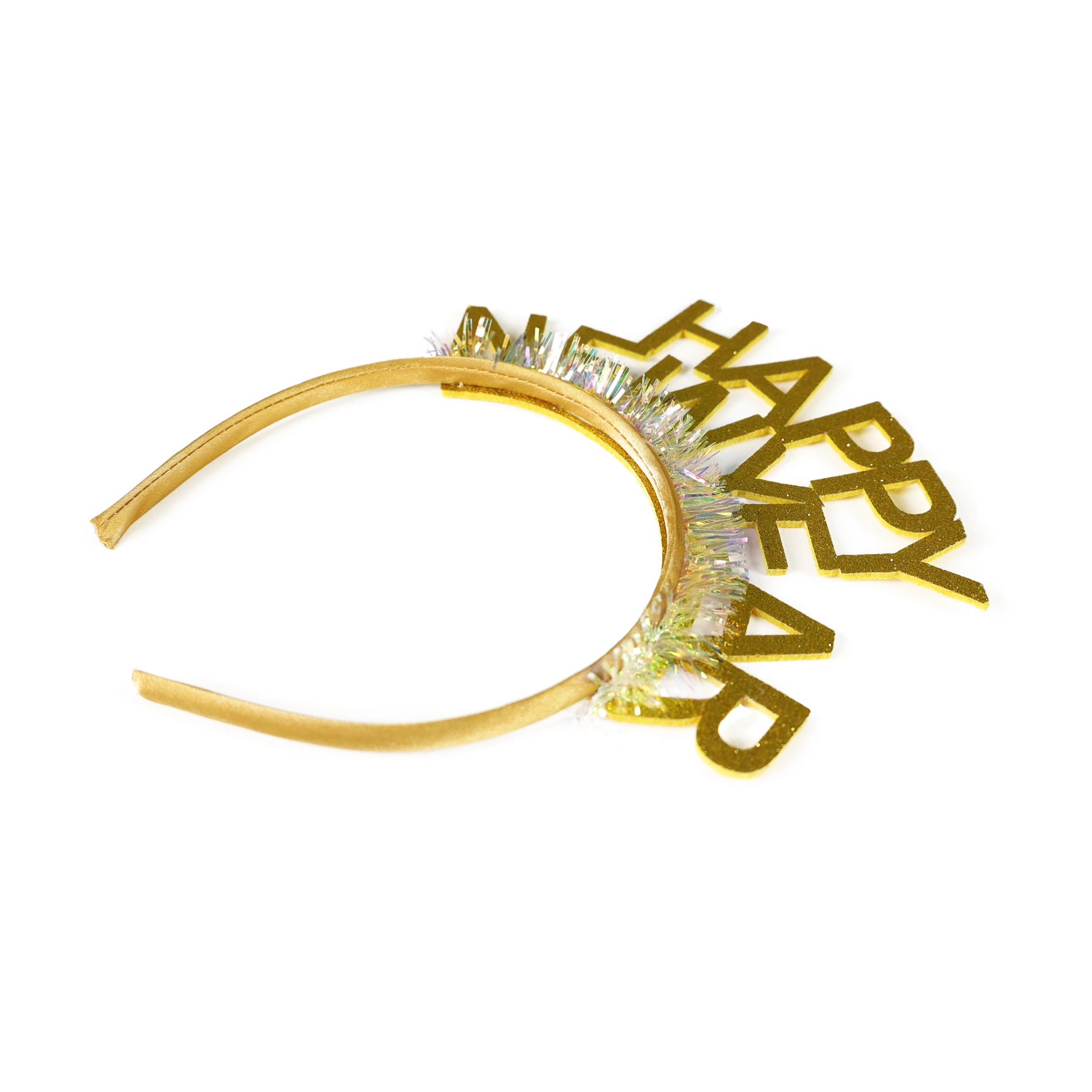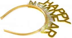 Stylowa imprezowa opaska w eleganckim, złotym kolorze z błyszczącym napisem HAPPY NEW YEAR doda Twojej stylizacji świątecznego szyku. Idealny dodatek na sylwestrową zabawę, przyjęcia i sesje tematyczne.