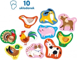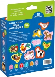 Wesołe zwierzątka z farmy zapraszają dzieci do godzin twórczej zabawy. Łączenie par elementów to idealny pierwszy krok do świata układanek i sposób na ćwiczenie cierpliwości oraz koncentracji. Zabawa naturalnie rozwija język – dzieci nazywają zwierzęta, kolory i detale na ilustracjach, a także uczą się je rozróżniać.