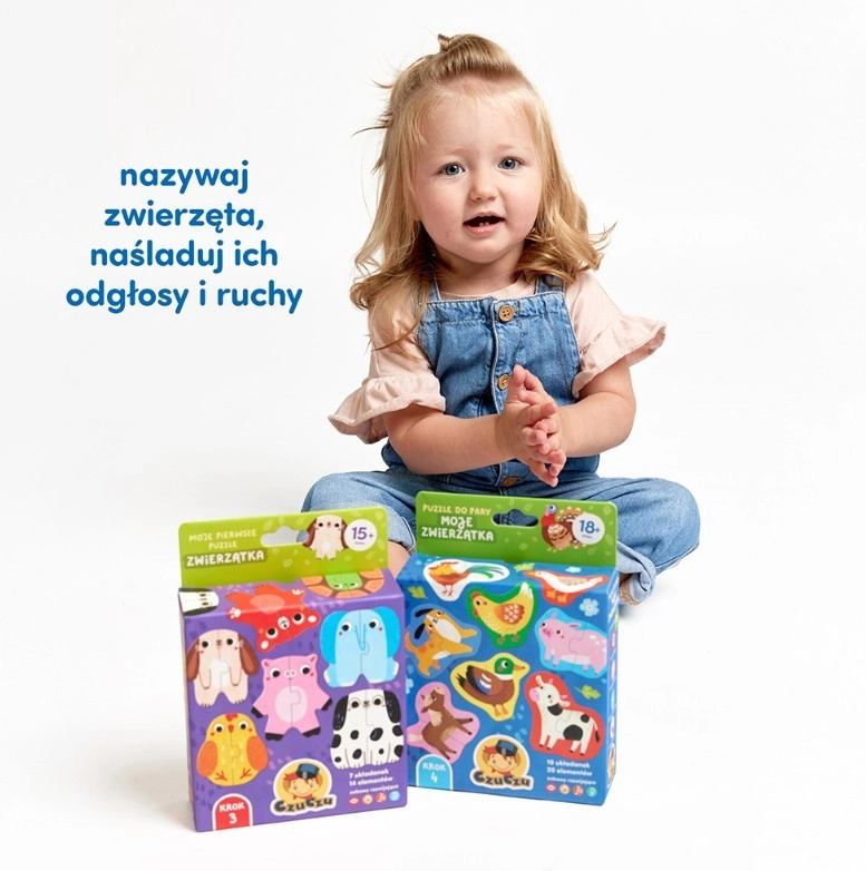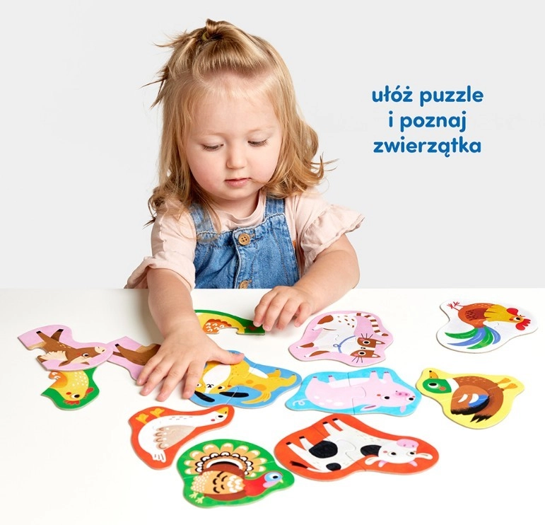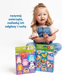 Odkryj pierwsze puzzle dla maluchów: dwuelementowe „Puzzle parowe – moje zwierzątka”. Dzieci podczas zabawy rozwijają spostrzegawczość, motorykę małą i wyobraźnię przestrzenną. Naśladowanie dźwięków i nazywanie zwierząt wspiera mowę i poszerza słownictwo – a do tego to świetna zabawa!