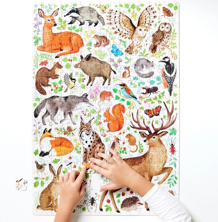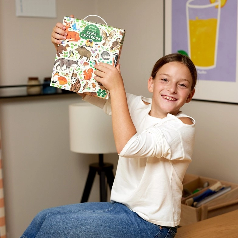 Odkryj magię lasów i łąk dzięki dużym, pięknie ilustrowanym puzzlom 300‑elementowym. Dzieci i dorośli zyskają edukacyjną zabawę, rozwój małej motoryki i logicznego myślenia. W zestawie znajduje się także plakat z faktami o leśnych zwierzętach, który pobudza ciekawość i wspiera naukę przez zabawę.