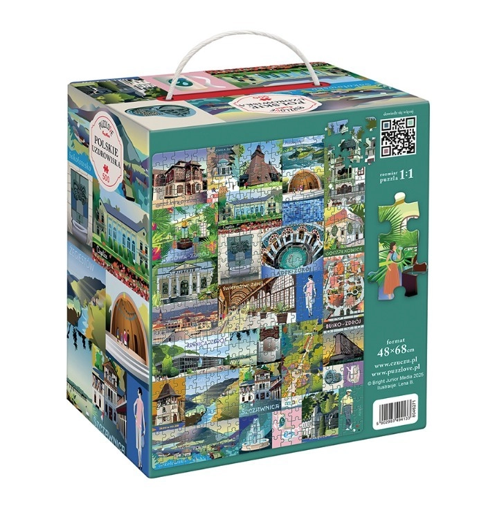 Odkryj urok polskich miast uzdrowiskowych z pięknie ilustrowanymi puzzlami Puzzlove. Ten zestaw z 500 elementami oferuje relaksującą rozrywkę, wysoką jakość wykonania oraz motyw pełen malowniczych widoków z najpiękniejszych uzdrowisk nad morzem, w górach i nad jeziorami. Idealny jako prezent, a po ułożeniu o wymiarach 48 × 68 cm także jako stylowa dekoracja do wnętrza.