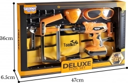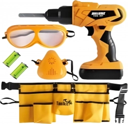 Woopie zestaw narzędzi dla małego majsterkowicza z okularami, wkrętarką akumulatorową i paskiem, 16 elementów