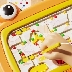 - Tablica z wbudowanym labiryntem, magnetyczny długopis na sznurku, kuleczki w 3 kolorach (czerwone, zielone, żółte; ok. 20 szt. każdego)