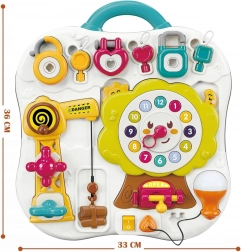 Interaktywna tablica manipulacyjna Woopie to świetna edukacyjna zabawka dla dzieci od 1. roku życia, która rozwija umiejętności w formie zabawy. Dzięki kolorowym elementom, pokrętłom, przełącznikom oraz tarczemu zegara do nauki wspiera myślenie logiczne, motorykę małą i koncentrację. Jest lekka, ma praktyczny uchwyt do łatwego przenoszenia i zapewnia długie godziny wartościowej zabawy.