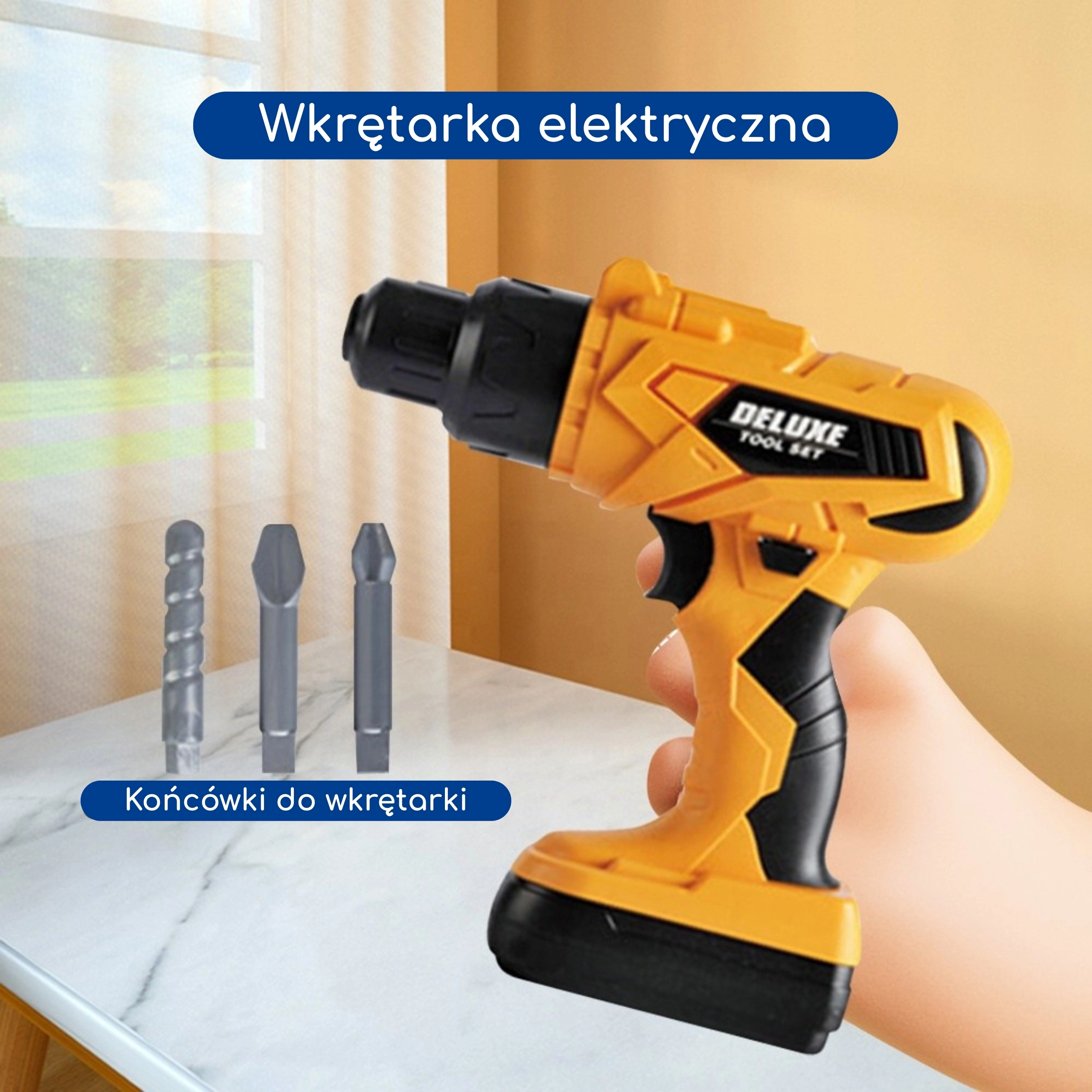 Zestaw narzędzi dla małego majsterkowicza Woopie zamieni każdy pokój w mini warsztat. Dzieci mogą naśladować dorosłych, wkręcać, wiercić i składać, korzystając z bogatego zestawu akcesoriów. Elektryczna wkrętarka akumulatorowa z funkcją zmiany kierunku obrotów i wymiennymi końcówkami (w tym końcówką typu „piła posuwisto-zwrotna” oraz uchwytem na bity) dodaje zabawie autentyczności.