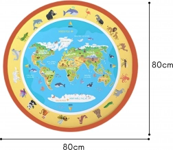 Mata z mapą i ilustracjami zwierząt wspiera naturalną naukę geografii i przyrody poprzez zabawę. Idealna dla ciekawych świata dzieci od 3 lat.