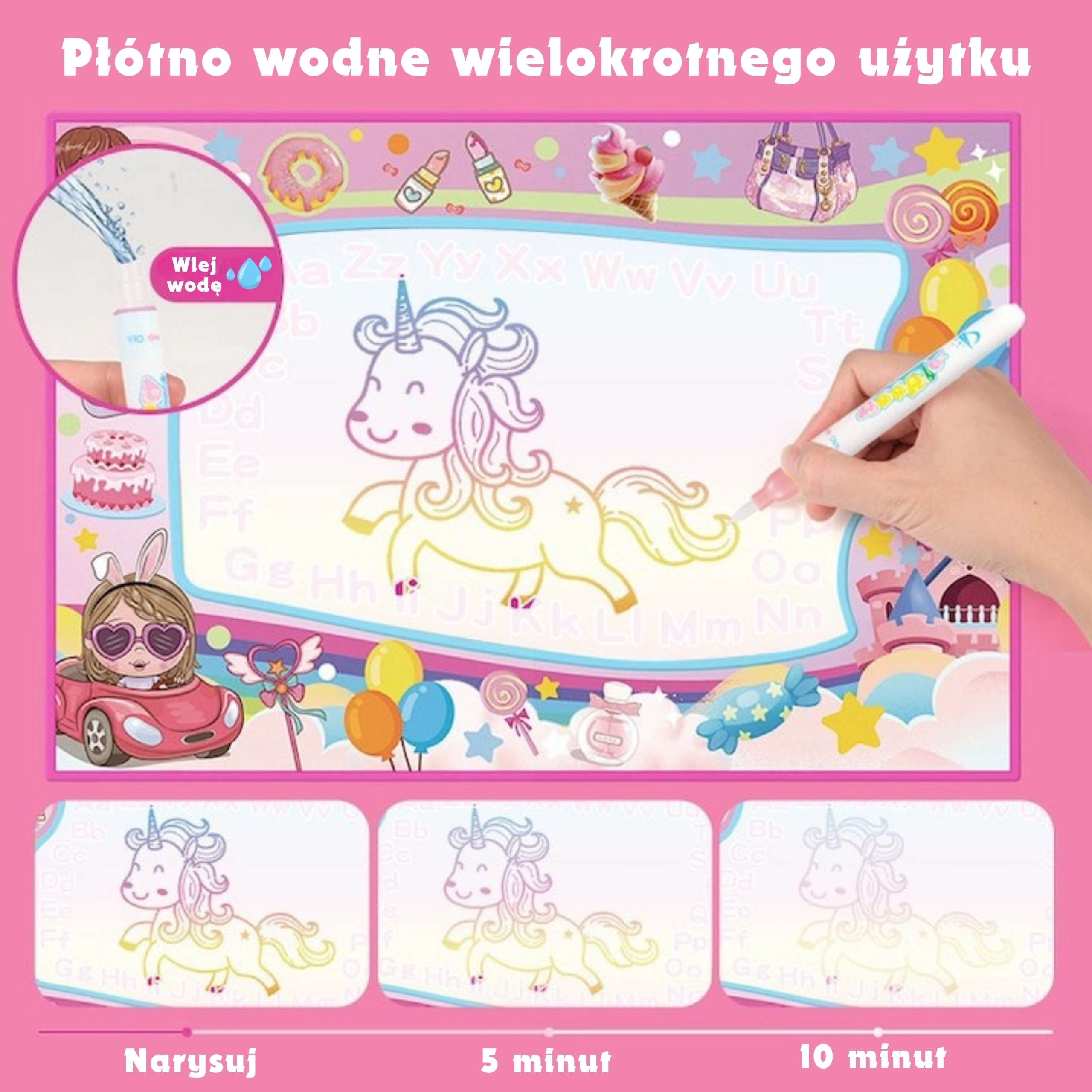 - Wodna mata do rysowania 2w1 (woda + światło UV)
