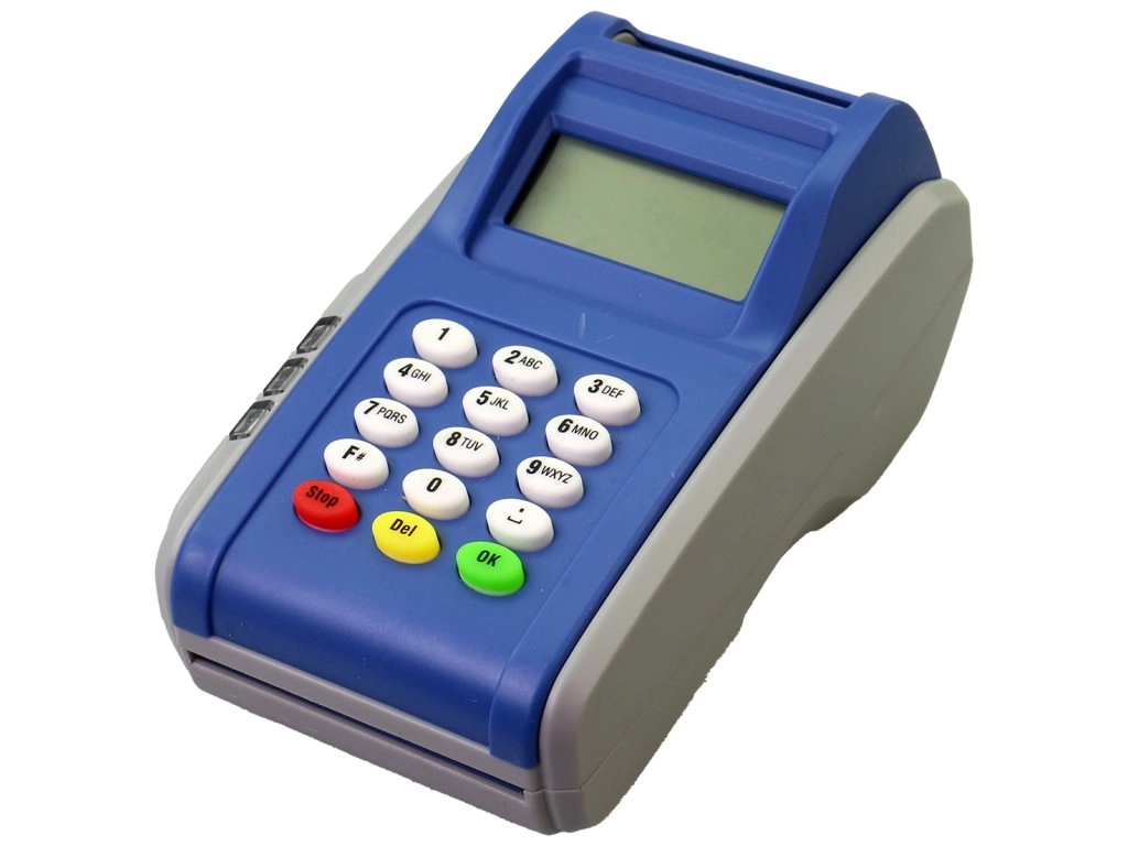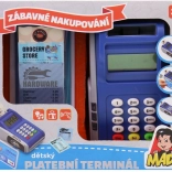 Mały wyświetlacz, klawiatura numeryczna i kolorowe przyciski funkcyjne uczą dzieci wprowadzania kwot i potwierdzania płatności w formie zabawy.