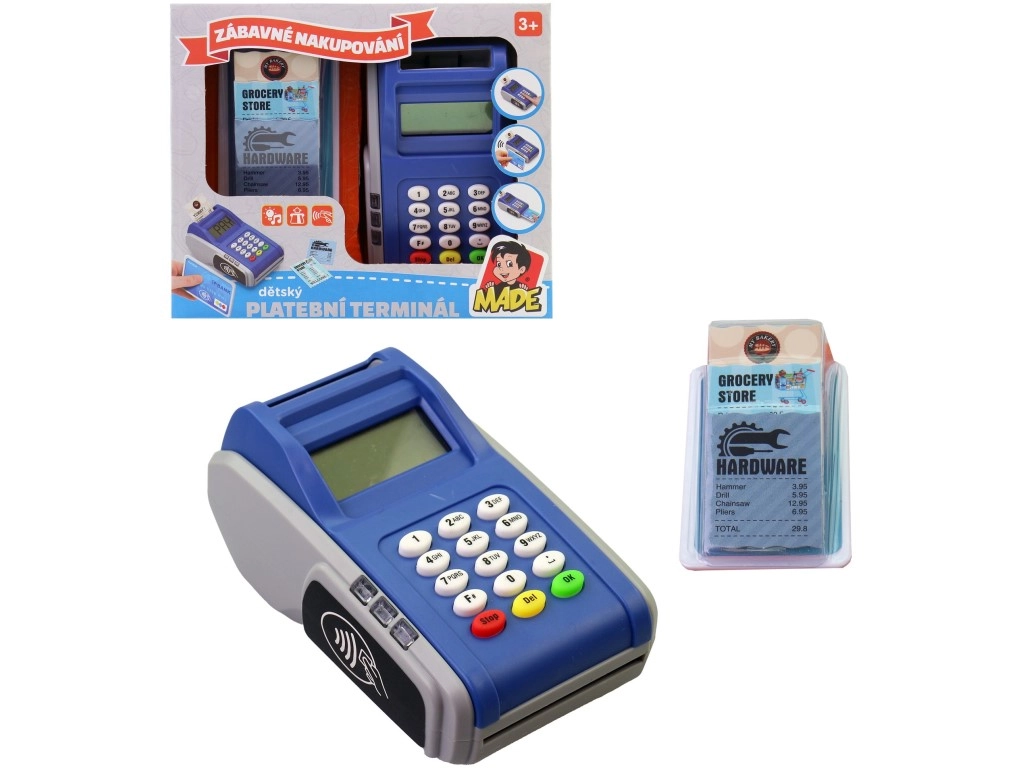 Dziecięcy terminal płatniczy zamieni każdą zabawę w sklep w realistyczne doświadczenie. Mali kasjerzy mogą wprowadzać kwoty za pomocą klawiatury numerycznej, „przykładać” karty dzięki funkcji zbliżeniowej oraz ćwiczyć komunikację i liczenie. Kompaktowe wymiary 17 × 14 × 6,5 cm mieszczą się w plecaku lub dziecięcej torebce, więc terminal nadaje się do domu, w podróż i do przedszkola.