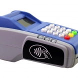 Boczny symbol płatności zbliżeniowej wspiera zabawę w przykładanie karty i rozwija wyobrażenie o nowoczesnych płatnościach.