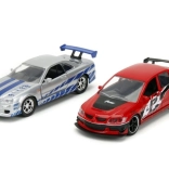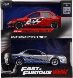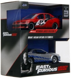 Zdobywasz jednocześnie Mitsubishi Lancer Evo IX 2006 oraz Nissan Skyline GT‑R R34 Briana – ikoniczny duet z Szybkich i wściekłych w skali 1:32.