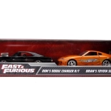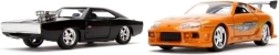 Poczuj autentyczny klimat filmowej sagi dzięki szczegółowo opracowanemu zestawowi dwóch metalowych modeli. Toyota Supra w ikonicznym pomarańczowym malowaniu oraz czarny Dodge Charger z kompresorem przyciągają uwagę dopracowanym nadwoziem, wysokiej jakości nadrukami i realistycznie wyglądającymi kołami.