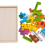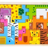 Zabawka wspiera rozwój logicznego myślenia, koordynację ręka–oko oraz naukę kształtów i kolorów. Dzięki 18 kolorowym elementom zwierząt (na przykład żyrafa, krokodyl, tygrys, lew, słoń, zebra, małpa, wielbłąd czy wąż) dzieci odkryją świat zwierząt w formie zabawy.