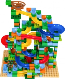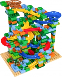 Złóż własny kolorowy tor kulkowy i obserwuj, jak kulki suną przez zakręty, leje i zjazdy. Dzięki bogatemu zestawowi 402 elementów zbudujesz niezliczone warianty, a dzieci naturalnie trenują koordynację ręka–oko oraz myślenie logiczne.