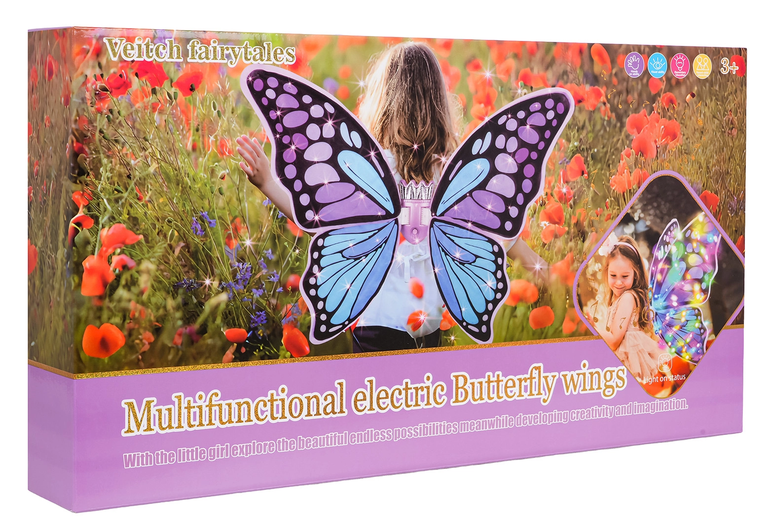 Zamień codzienną zabawę w bajkową przygodę z tymi fioletowymi motylimi skrzydłami dla dzieci od 3 lat. Oferują efekty świetlne, dźwięk/melodie oraz kilka trybów trzepotania. Dzięki regulowanym ramiączkom są wygodne w noszeniu i świetnie sprawdzą się na karnawał, występy oraz zabawy w odgrywanie ról.