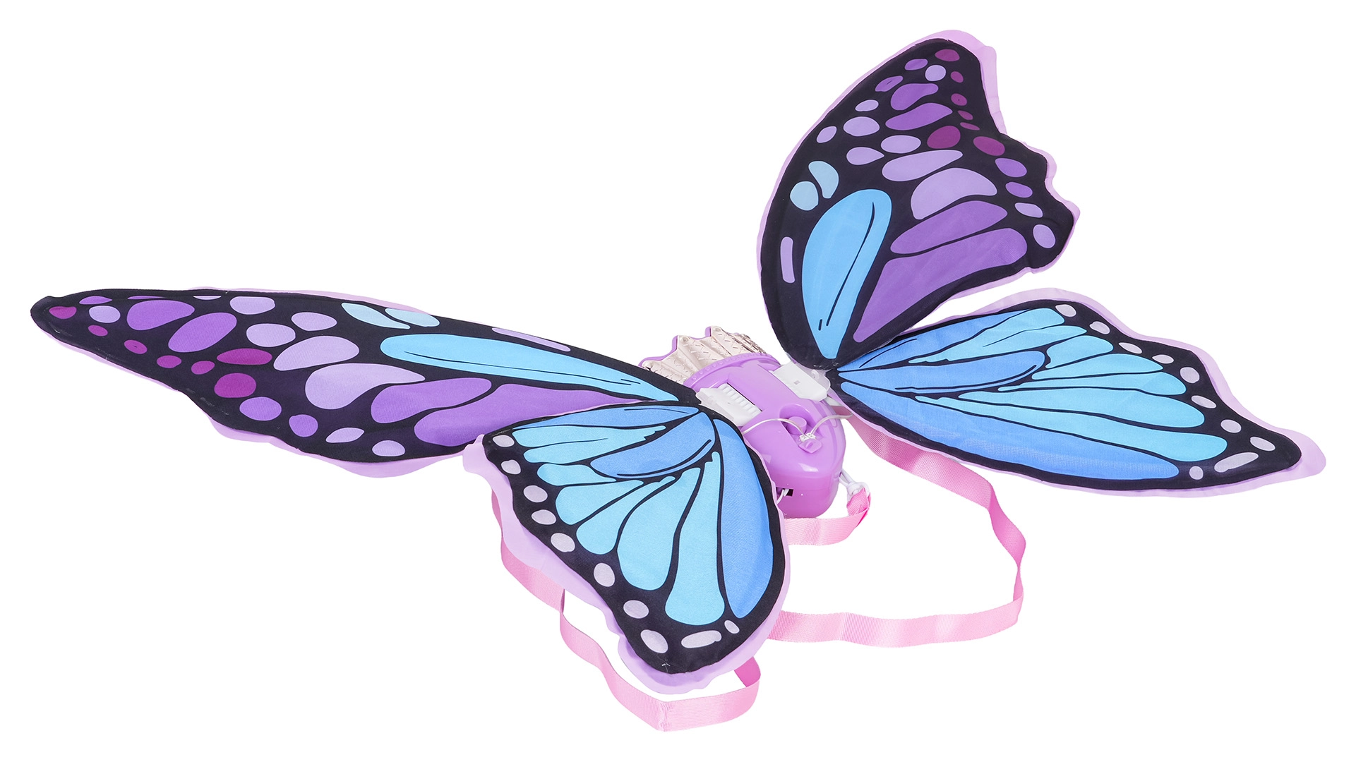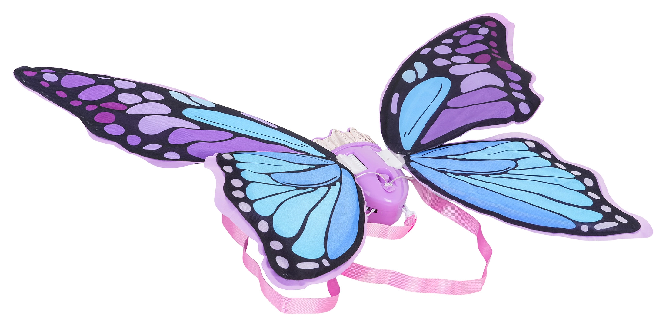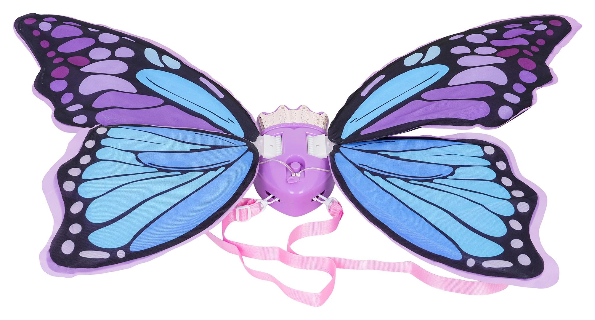 Urokliwe motyle skrzydła w odcieniach fioletu i błękitu rozświetlą każdą dziecięcą imprezę. Lekka konstrukcja i miękkie paski zapewniają wygodę, a zintegrowane efekty świetlne oraz melodie pobudzają dziecięcą wyobraźnię.