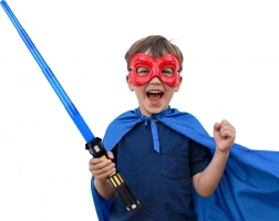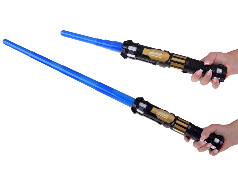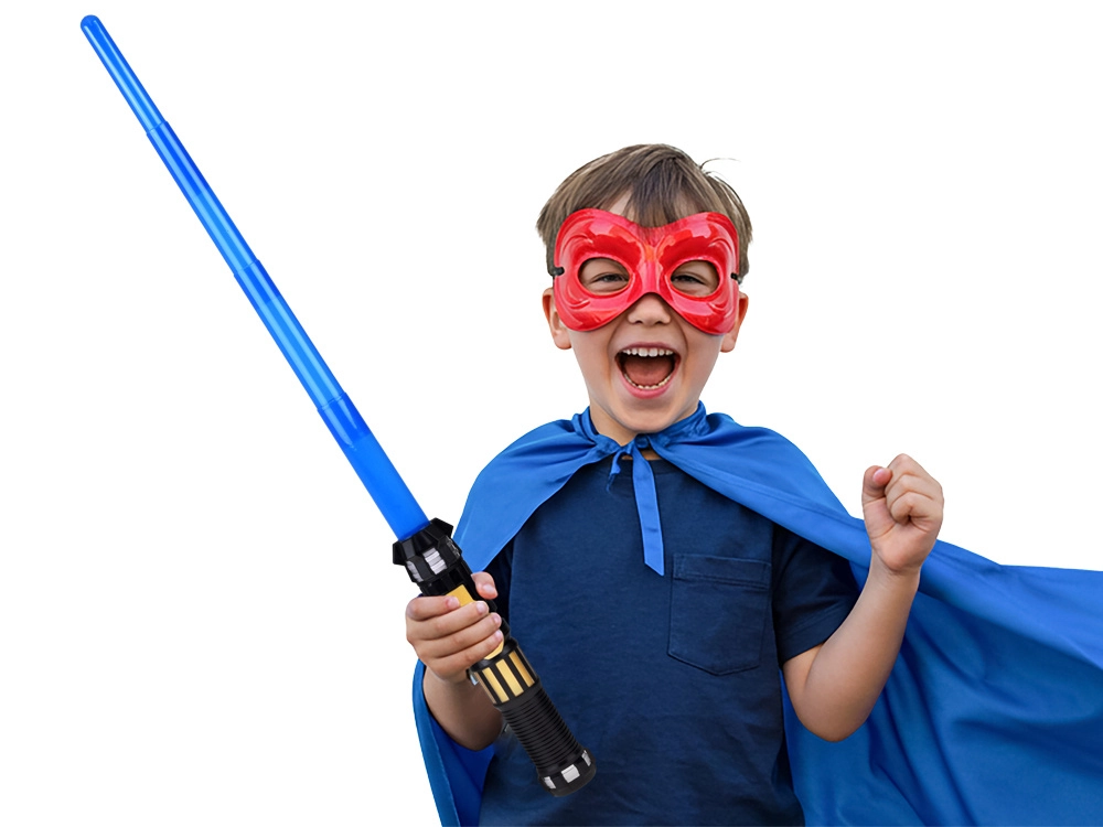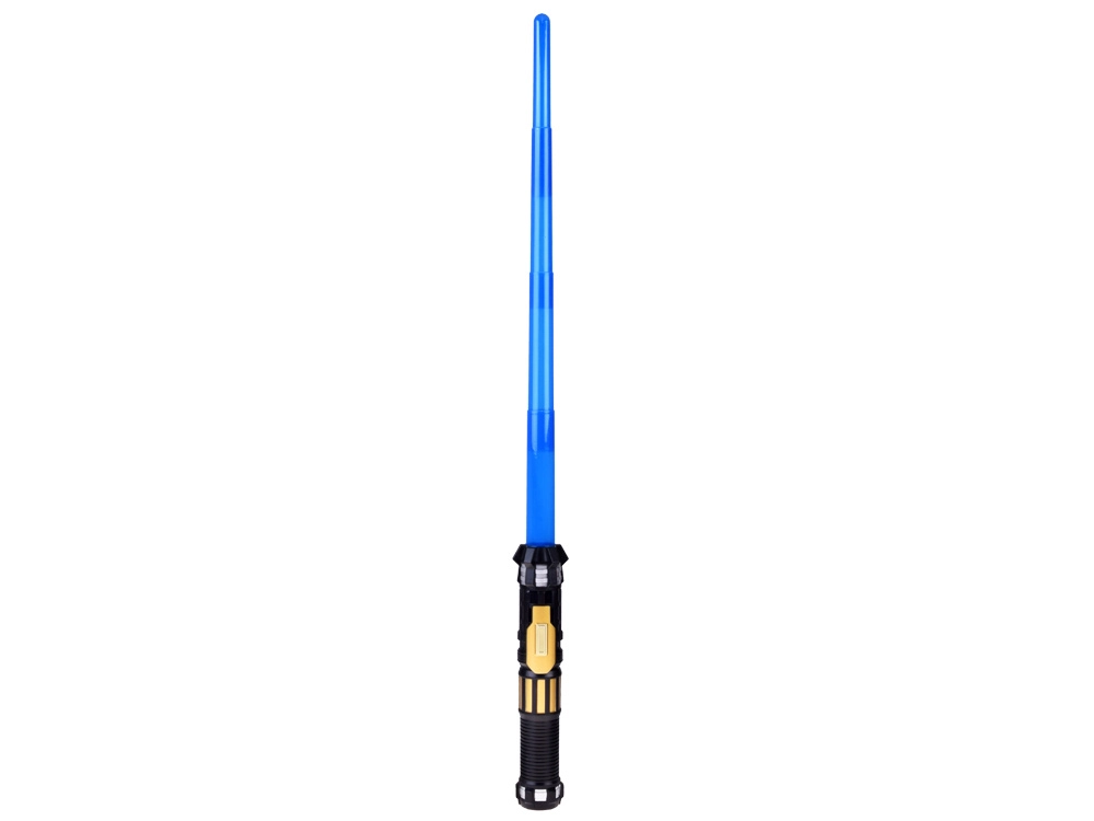 Ten miecz świetlny jest idealny dla wszystkich małych fanów kosmicznych przygód. Dzięki teleskopowej konstrukcji miecz łatwo się wysuwa energicznym ruchem do przodu, a przycisk na rękojeści aktywuje jasno świecące niebieskie ostrze oraz realistyczne dźwięki. Idealny do odgrywania ról, kostiumów i domowych pojedynków pełnych fantazji.