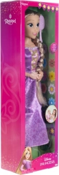 Lalka inspirowana jest postacią z filmu Zaplątani i wyróżnia się pięknymi detalami: fioletową sukienką z nadrukiem, realistycznymi rysami twarzy oraz akcesorium w postaci grzebyka do stylizacji włosów. Idealna do rozwijania wyobraźni, małej motoryki i zabaw w odgrywanie ról.