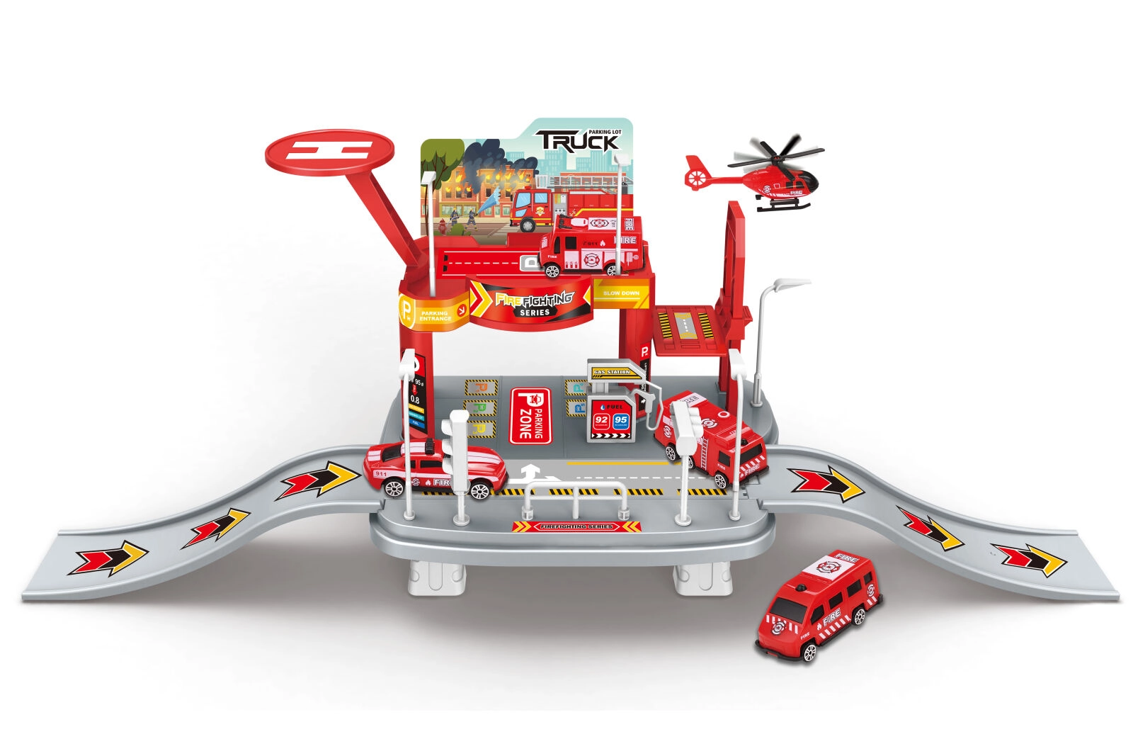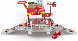 Ta szczegółowo opracowana remiza strażacka dostarcza dzieciom realistycznej zabawy w akcje ratunkowe. W zestawie znajduje się kompletny parking z lądowiskiem dla helikoptera, ręczna winda do przenoszenia pojazdów między piętrami oraz stacja paliw do uzupełniania baku. Dzięki dołączonym znakom dzieci łatwo stworzą własne sytuacje drogowe.