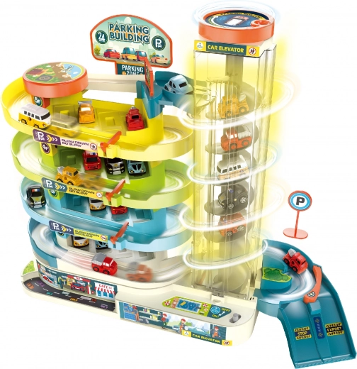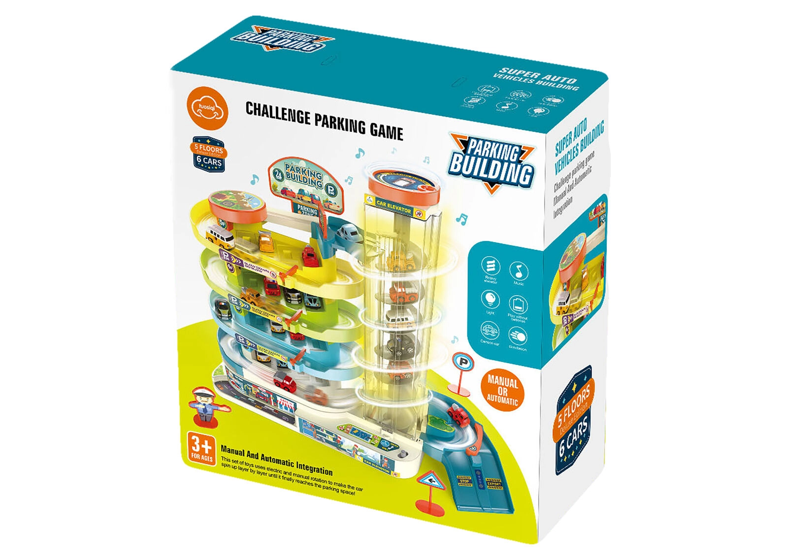 Ten piętrowy garaż zapewnia dzieciom godziny kreatywnej zabawy. Działającą windę można używać na baterie lub manualnie (przełącznik), więc dzieci mogą wybrać sposób zabawy. Efekty świetlne i dźwiękowe dodają parkowaniu i przemieszczaniu aut jeszcze większej autentyczności.