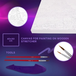 W opakowaniu znajdziesz wszystko, czego potrzebujesz – od płótna przez samoutwardzalną masę po farby i pędzel. Wystarczy rozpakować i zacząć tworzyć. Trudność 4/5 jest świetna dla tych, którzy chcą wyzwania i jednocześnie wyraźnego efektu końcowego.