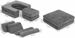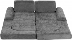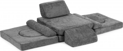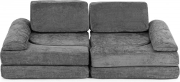 Składana modułowa dziecięca sofa dla 2 dzieci z 10 elementów z miękkiej tapicerowanej tkaniny – szara ECOTOYS