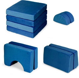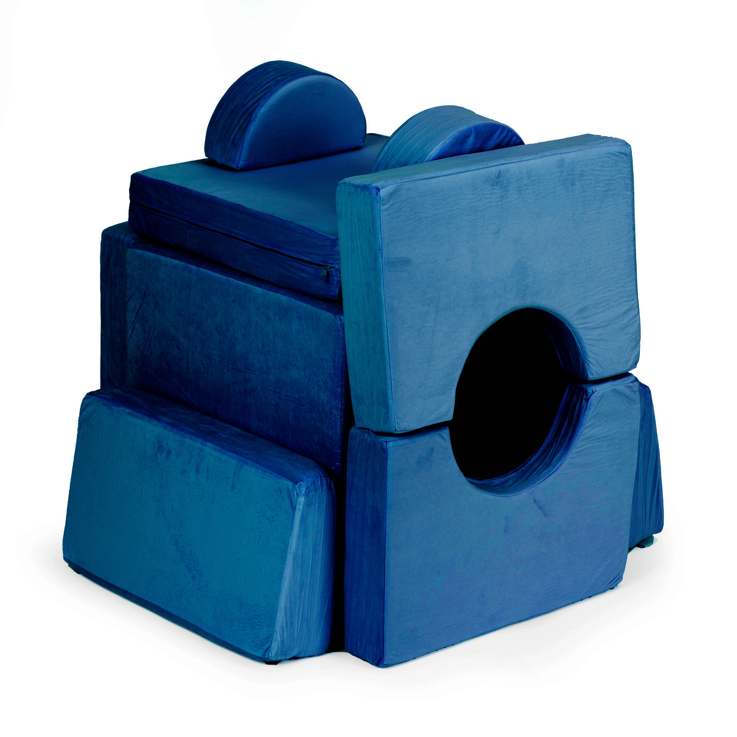 Praktyczne zdejmowane pokrowce na zamek ułatwiają pielęgnację i utrzymują mebel w czystości. Uniwersalny niebieski kolor pasuje do większości wnętrz pokoi dziecięcych i sal zabaw. Dzięki maksymalnemu udźwigowi 120 kg oraz dużym wymiarom jest idealna dla dwojga dzieci jednocześnie.