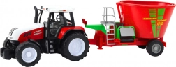 Czerwony traktor z przyczepą i dużym mieszalnikiem paszy wiernie naśladuje prawdziwą maszynę rolniczą. Dzięki napędowi po popchnięciu pojazd sam rusza, a dołączona przyczepa z mieszalnikiem dodaje zabawie jeszcze więcej realizmu – dzieci mogą odgrywać karmienie zwierząt i codzienne życie na farmie.