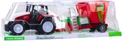 Czerwony traktor farmerski z przyczepą i mieszalnikiem paszy 60 cm